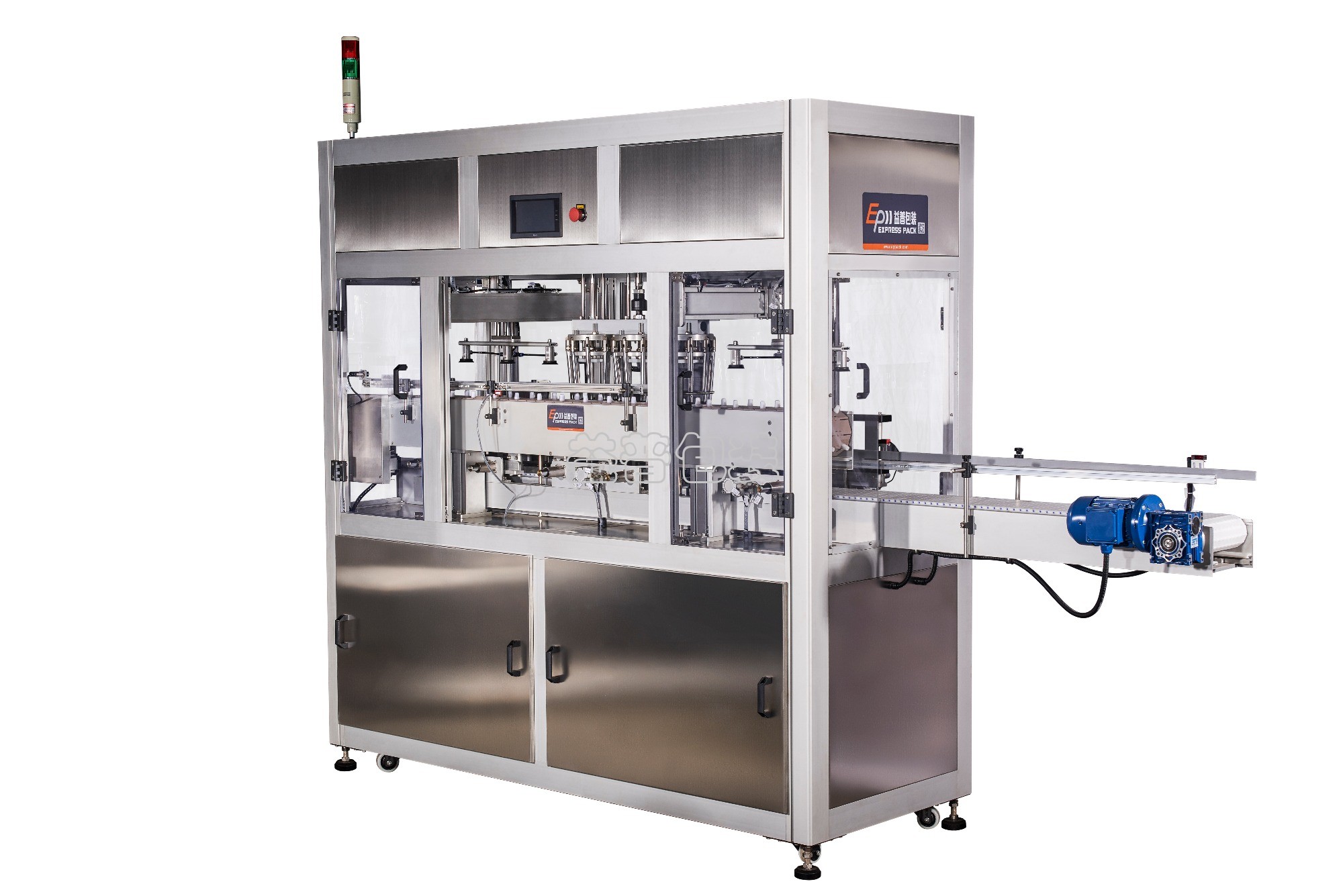 設(shè)備由進(jìn)瓶輸送線,模具輸送線,放模具裝置,壓提環(huán)裝置,取模具裝置,模具,定位裝置,架體,控制系統(tǒng)等組成。設(shè)備動(dòng)作分為放提環(huán)、放模具、壓提環(huán)、取模具四個(gè)基本動(dòng)作完成。首先,由人工將提環(huán)放在模具上,然后由模具輸送線輸送至放模工位,放模裝置將三個(gè)模具放在另個(gè)瓶子上,再由進(jìn)瓶輸送線將瓶子輸送至壓提環(huán)工位。壓完提環(huán)后由取模裝置將模具取放至模具輸送線線上,由模具輸送線將模具輸送線至放提環(huán)工位循環(huán)使用。放模、壓